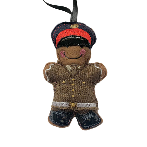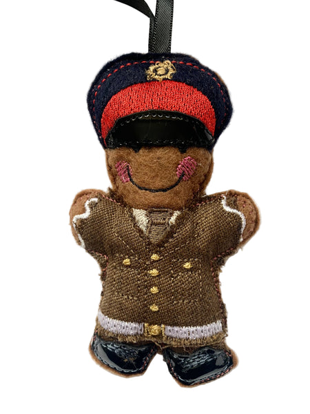 This beautifully detailed British Soldier Gingerbread man character in full military dress uniform adds an unusual twist to the traditional gingerbread ornament! This Military style decoration would make the perfect going away or retirement gift. As a tree ornament it would be the perfect addition to any Christmas decoration collection.