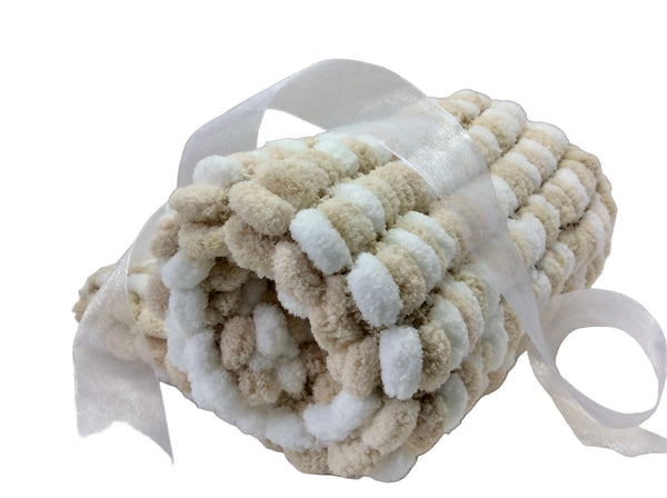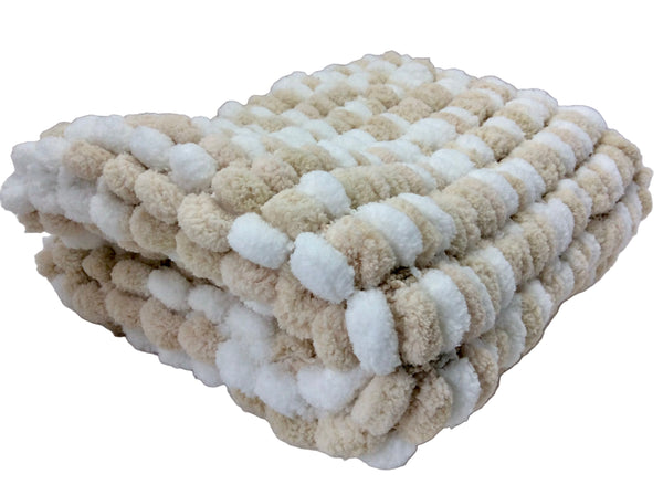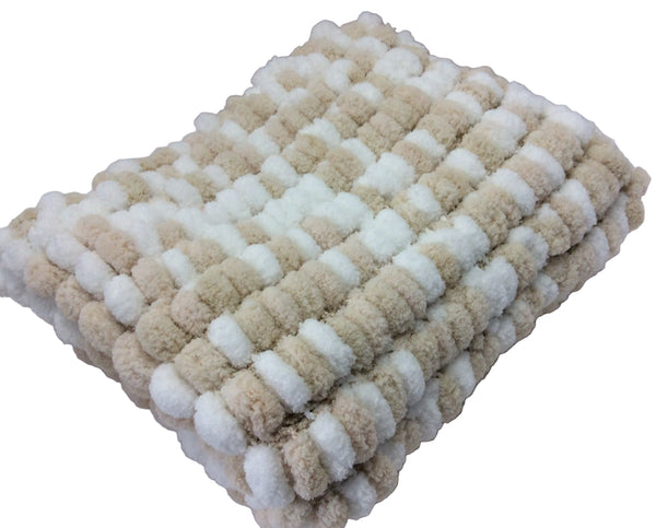 This gorgeous 'oh so soft' baby blanket cover is hand knitted using a gorgeous pom pom wool in neutral shades of white and beige The perfect size decorative topper for your babies pram, stroller or to cover your baby in their car seat. This beautiful handmade blanket would also make a lovely photo prop for your precious newborn.The perfect gift for any baby shower or new baby.