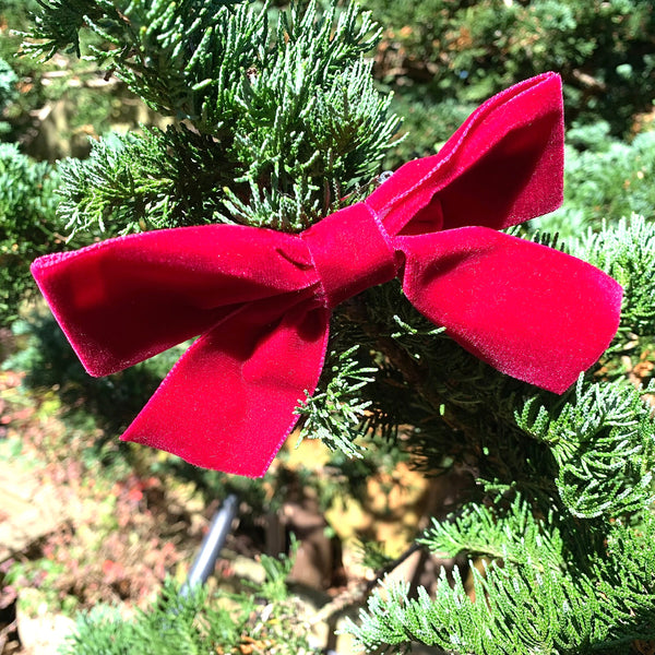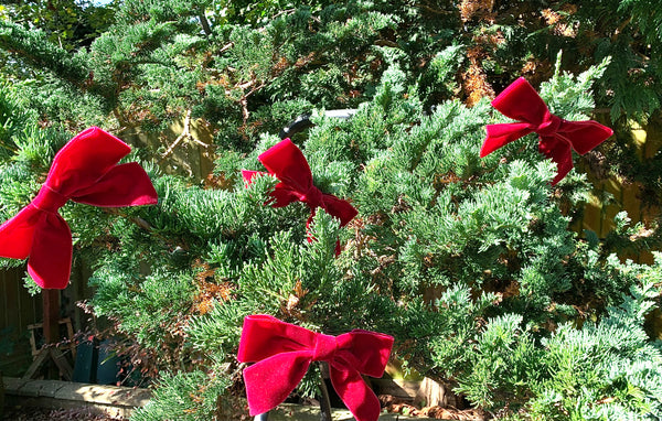 Add a touch of festive charm to your Christmas tree with these handmade dark red velvet ribbon, Christmas tree bows. Perfect for adorning your Christmas tree, as a wreath attachment or even adding a special touch to your gift wrapping, this versatile bow is a must-have for the holiday season. Unlike many other Christmas bows these are individually handmade and sewn in a luxurious dark red velvet ribbon.