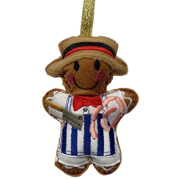 This beautifully detailed butcher novelty character adds an unusual twist to the traditional gingerbread ornament! A welcome addition to your gingerbread decor, whether it be hanging on your Christmas Tree, bag or even a rear view mirror charm!