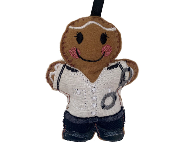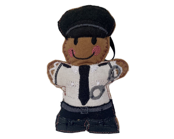 Beautifully detailed Gingerbread man Prison Officer novelty character adds an unusual twist to the traditional gingerbread ornament!