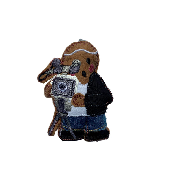 This beautifully detailed wedding photographer/videographer novelty character adds an unusual twist to the traditional gingerbread ornament! A welcome addition to your gingerbread decor, whether it be hanging on your Christmas Tree, bag or even a rear view mirror charm!